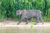 Zdjęcie "Zbliżenie Jaguara spacerującego w pobliżu rzeki" może być wykorzystywane do celów osobistych i komercyjnych zgodnie z warunkami zakupionej licencji Royalty-free. Obraz jest dostępny do pobrania w jakości wysokiej rozdzielczości do 5760x3840.