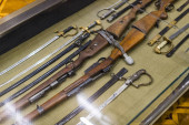 Tula, Rosja, wrzesień, 16.2016: Wnętrze i eksponaty Państwowego Muzeum Broni w Tuli. Muzeum prezentuje kolekcję broni zimnej i małej.