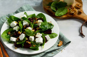 Witaminowa przekąska. Sałatka ze szpinakiem, serem feta, burakami i wal