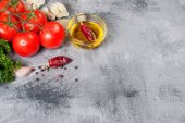 Zioła i przyprawy w tle. Pietruszka zwyczajna, pieprz chili, czosnek, t