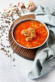 Zdjęcie "Barszcz zupa z zielonymi w naczyniu ceramicznym" może być wykorzystywane do celów osobistych i komercyjnych zgodnie z warunkami zakupionej licencji Royalty-free. Obraz jest dostępny do pobrania w jakości wysokiej rozdzielczości do 5760x3840.