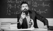 Zdjęcie "Szkoła hipsterska. Hipsterski nauczyciel. Hipster w klasie. Brodaty mężczyzna w formalnym stroju przy stole nauczycielskim. Brutalny człowiek w hipsterskim stylu w szkole lub na uniwersytecie" może być wykorzystywane do celów osobistych i komercyjnych zgodnie z warunkami zakupionej licencji Royalty-free. Obraz jest dostępny do pobrania w jakości wysokiej rozdzielczości do 5760x3840.