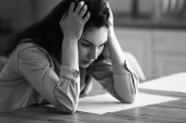 Czarno-biały portret uroczej nastolatki na ciemnym tle