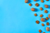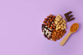 Miska ze smacznymi orzechami makadamia na tle koloru