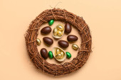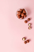 Smaczne orzechy makadamia na kolorowym tle