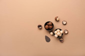 Smaczne orzechy makadamia na kolorowym tle