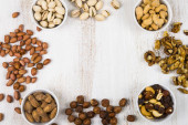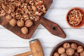 Miska ze smacznymi orzechami orzechowymi na tle koloru