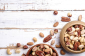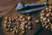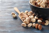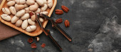Płyta ze smacznymi orzechami orzechowymi i orzechami na ciemnym tle