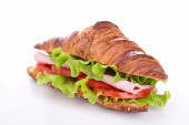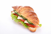 Smaczna kanapka croissant na białym tle