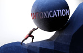 słowo zatrucie wykonane z brązowych liter drewnianych leży na niebieskim stole