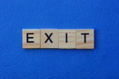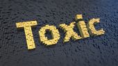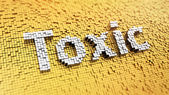 słowo toksyczne wykonane z brązowych liter drewnianych leży na niebieskim stole