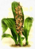 Ilustracja roślin i kwiatów w grawerowaniu