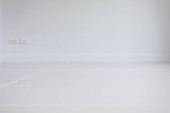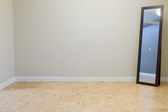 puste wnętrze pokoju, ściana z zaprawy białej i czysta podłoga z płytek w nowym domu