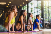 Zdjęcie ""Grupa różnorodności praktykujących zajęcia jogi, zdrowe lub medytacja Ćwiczenia, rozciąganie w górę twarz psa ćwiczenia, noszenie biustonosz sportowy i spodnie, sport i koncepcja opieki zdrowotnej" może być wykorzystywane do celów osobistych i komercyjnych zgodnie z warunkami zakupionej licencji Royalty-free. Obraz jest dostępny do pobrania w jakości wysokiej rozdzielczości do 5760x3840.