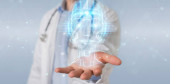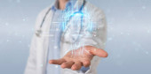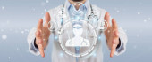 Doktor za pomocą America USA Mapa Globe sieci hologram renderowania 3D