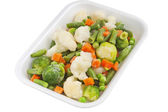 Surowa zapiekanka z warzywami, kiełbasą i krewetkami przygotowana do pieczenia