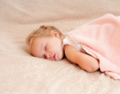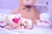 noworodek śpi z jej zabawka Miś