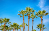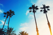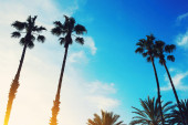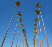 California palmy wysokie drzewa silohuette na błękitne niebo