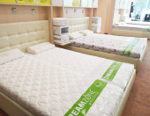 Bobruisk Białoruś 19.09.2019: Sprzedaż nowoczesnych i wygodnych kanap i łóżek w sklepie meblowym, mebli