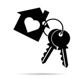 sylwetka klucze drzwi na drzwi otwarte z białym tłem
