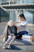 Zdjęcie "Wolontariuszka wspierająca bezdomną kobietę przynosząc starą odzież" może być wykorzystywane do celów osobistych i komercyjnych zgodnie z warunkami zakupionej licencji Royalty-free. Obraz jest dostępny do pobrania w jakości wysokiej rozdzielczości do 5760x3840.