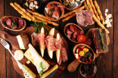 Wina włoskie Przystawki przekąski zestaw. Ricotta salata, Mediterranean