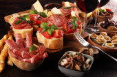 Wina włoskie Przystawki przekąski zestaw. Ricotta salata, Mediterranean