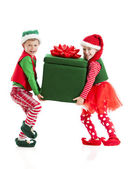 dzieci Boże Narodzenie prezenty i śmieszne czapki - na białym tle