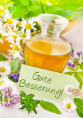 Niemiecki Naturalnie Leczyć Zioła i olej z rumianku zbliżenie
