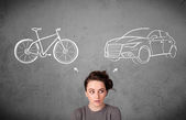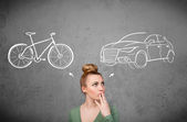Zdjęcie "kobieta co do wyboru roweru i samochodu" może być wykorzystywane do celów osobistych i komercyjnych zgodnie z warunkami zakupionej licencji Royalty-free. Obraz jest dostępny do pobrania w jakości wysokiej rozdzielczości do 5760x3840.