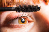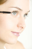 zbliżenie kobiety stosowania tuszu do rzęs