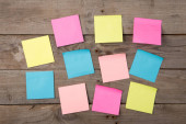 różne puste papierowe wielokolorowe naklejki na białej ścianie