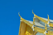 Złote zbliżenie pagody z błękitnym niebem, świątynia Suthep doy, Chiangma