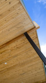Zdjęcie "Dach z metalu z rynną i rurą odpływową. Dom z dachówką z żelaza i rynną deszczową, widok z bliska." może być wykorzystywane do celów osobistych i komercyjnych zgodnie z warunkami zakupionej licencji Royalty-free. Obraz jest dostępny do pobrania w jakości wysokiej rozdzielczości do 5760x3840.