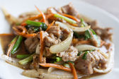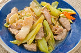 mieszać smażone wieprzowina z zielona papryka chili.