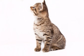 mały szary kot na białym tle