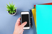 Zdjęcie "przycięty widok kobiety trzymającej smartfona w pobliżu szablonu projektu strony internetowej, tabletu cyfrowego i zielonej rośliny na beżowym tle" może być wykorzystywane do celów osobistych i komercyjnych zgodnie z warunkami zakupionej licencji Royalty-free. Obraz jest dostępny do pobrania w jakości wysokiej rozdzielczości do 5760x3840.