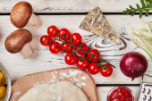 widok z góry pyszne serwowane ślimaki w pobliżu świeżych składników na tle kamienia