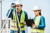 Zdjęcie "Ankieter z poziomem cyfrowym wskazujący na kolegę z projektem" może być wykorzystywane do celów osobistych i komercyjnych zgodnie z warunkami zakupionej licencji Royalty-free. Obraz jest dostępny do pobrania w jakości wysokiej rozdzielczości do 5760x3840.