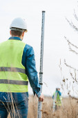 Zdjęcie "Ankieter patrzący przez poziom cyfrowy w terenie" może być wykorzystywane do celów osobistych i komercyjnych zgodnie z warunkami zakupionej licencji Royalty-free. Obraz jest dostępny do pobrania w jakości wysokiej rozdzielczości do 5760x3840.