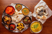 Zdjęcie "Indyjskie jedzenie wegetariańskie Thali lub paczka żywności taca z przedziałami, w których Malai Kofta, chole, Dal tarka, suche aloo sabji, chapati i ryż ze słodkim gulab jamun służył" może być wykorzystywane do celów osobistych i komercyjnych zgodnie z warunkami zakupionej licencji Royalty-free. Obraz jest dostępny do pobrania w jakości wysokiej rozdzielczości do 5760x3840.