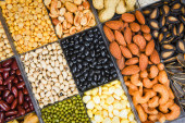 Kolaż różne ziarna mieszanki grochu rolnictwo naturalne zdrowe fo