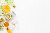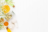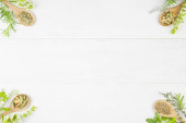 Zioła lecznicze na białym tle. Widok góry. Przestrzeń kopiowania.
