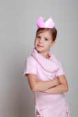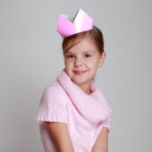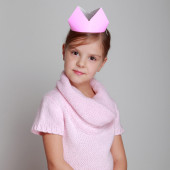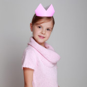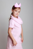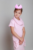 dziecko w różowy sukienka z dzianiny z koroną różowy