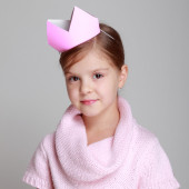 dziewczyna w różowy sukienka z dzianiny z koroną