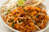 pad thai mieszać smażony makaron z Tajlandii na biały danie