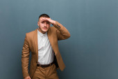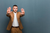 młody przystojny mężczyzna czuje się zdezorientowany i zaskoczony, pokazując jesteś szalony, szalony lub szalony na płaskiej tle