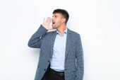 Zdjęcie "młody przystojny biznesmen czuje się zszokowany i zdumiony trzymając twarzą w rękę z niedowierzaniem z szeroko otwartymi ustami na płaskim tle" może być wykorzystywane do celów osobistych i komercyjnych zgodnie z warunkami zakupionej licencji Royalty-free. Obraz jest dostępny do pobrania w jakości wysokiej rozdzielczości do 5760x3840.
