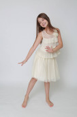 dziewczyna taniec na szarym tle