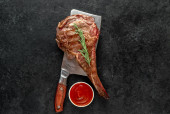 Pieczona królicza nóżka z ziołami, podawana na serwetce. Organiczne mięso na farmie. Widok z góry
